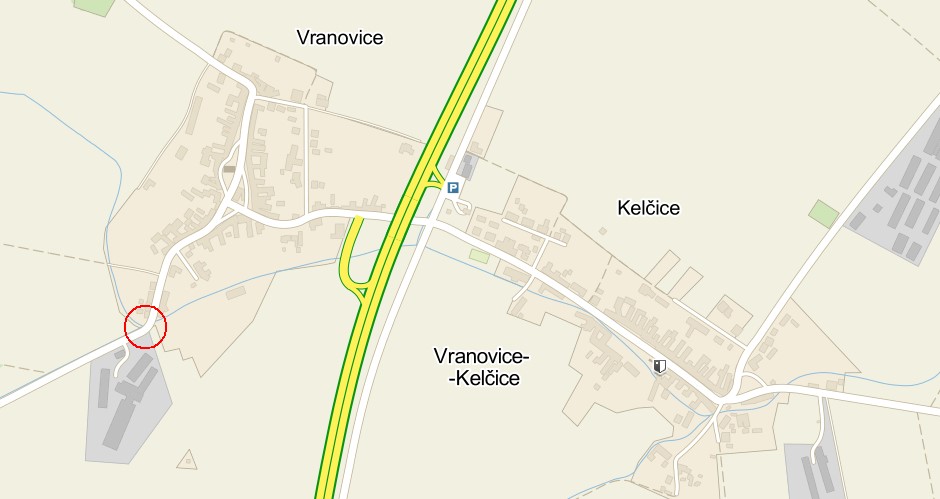 Vranovice, Kelčický potok, mostek u domu č. p. 109