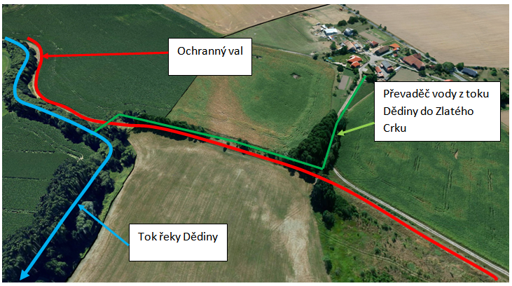 Hlavním místem ochrany je ochranný val a jeho sledování za zvýšených průtocích. Kritickým místem je uzavírací místo přivaděče do Zlatého Crku.