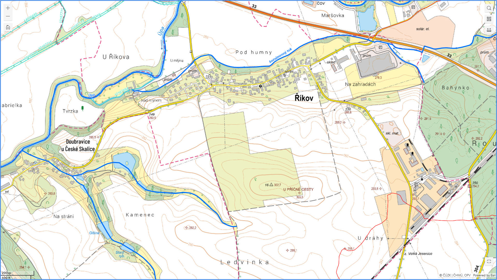 Mapa toků a vodních děl